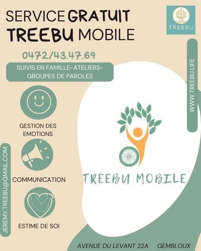 Qui peut devenir bénévole?Devenir bénévole au sein de treebu mobile est accessible à toute personne, homme ou femme, qui dispose d’une disponibilité d’environ 2h par semaine (en journée, en soirée et/ou en w-e) et qui désire s’investir dans une activité bénévole solidaire. Aucun diplôme n’est requis et aucune formation préalable n’est demandée. Mais afin de garantir la qualité des accompagnements, le suivi de chaque accompagnement est assuré par l’équipe d’encadrement. Si aucune compétence particulière n’est demandée, un intérêt certain pour le domaine de la petite enfance et du soutien à la parentalité est indispensable. Des qualités d’ouverture d’esprit, de tolérance, de respect, d’empathie et d’humilité sont également nécessaires.infos au 0472434769 ou via Jeremy.treebu@gmail.com